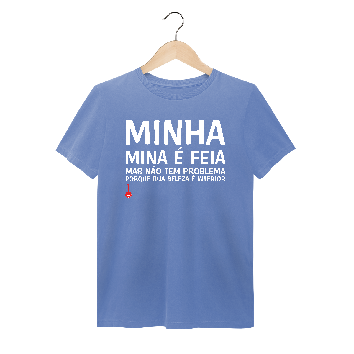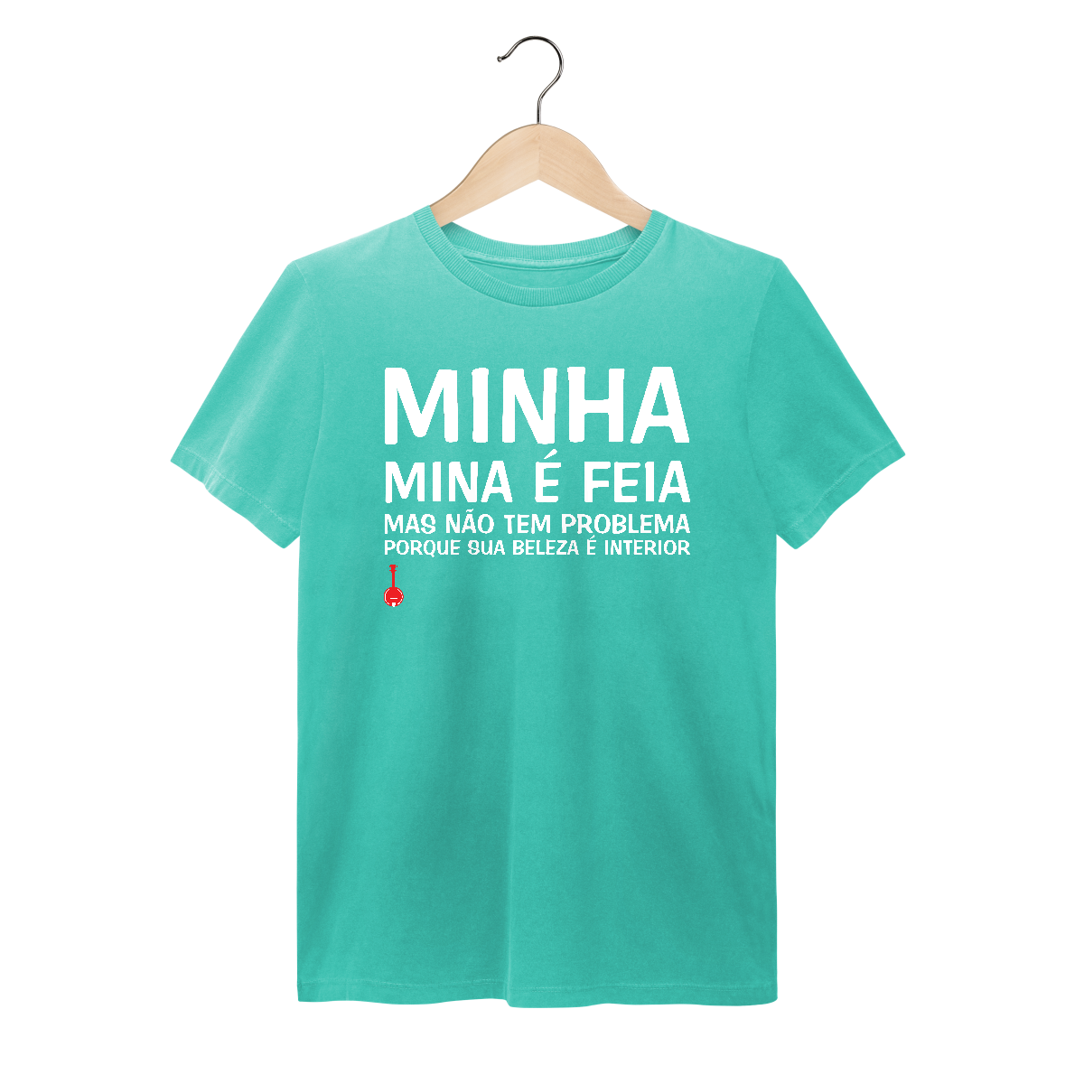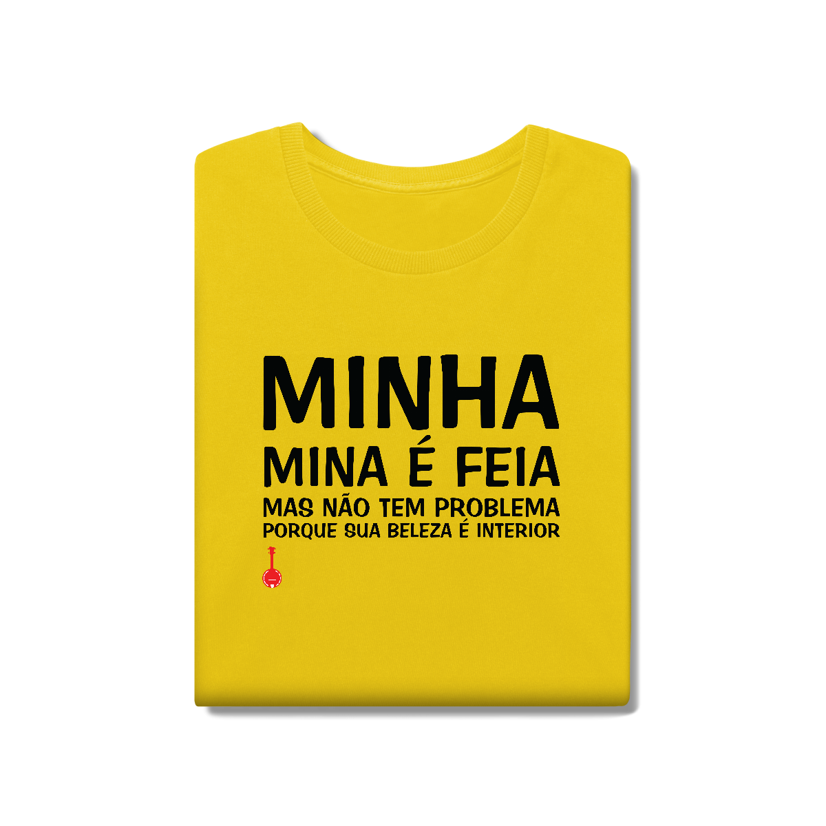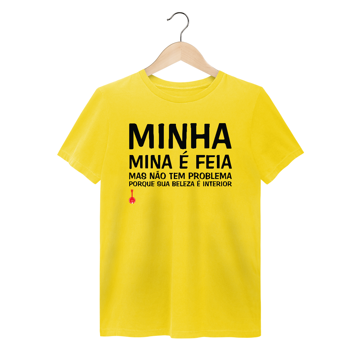 Camiseta cheia de humor! Estampa inspirada na música “Mina Feia”, composição de Gabriel Moura, Seu Jorge, Pretinho da Serrinha e Rogê, que fez muito sucesso na voz do próprio Seu Jorge.