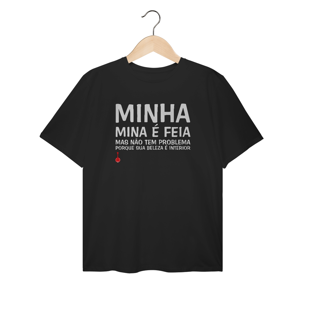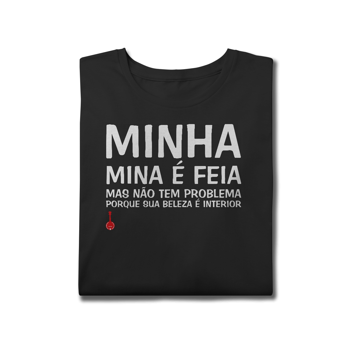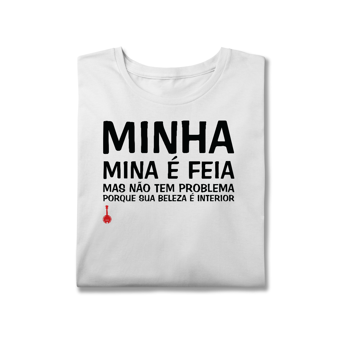 Camiseta cheia de humor! Estampa inspirada na música “Mina Feia”, composição de Gabriel Moura, Seu Jorge, Pretinho da Serrinha e Rogê, que fez muito sucesso na voz do próprio Seu Jorge.