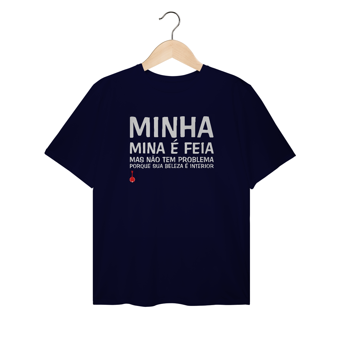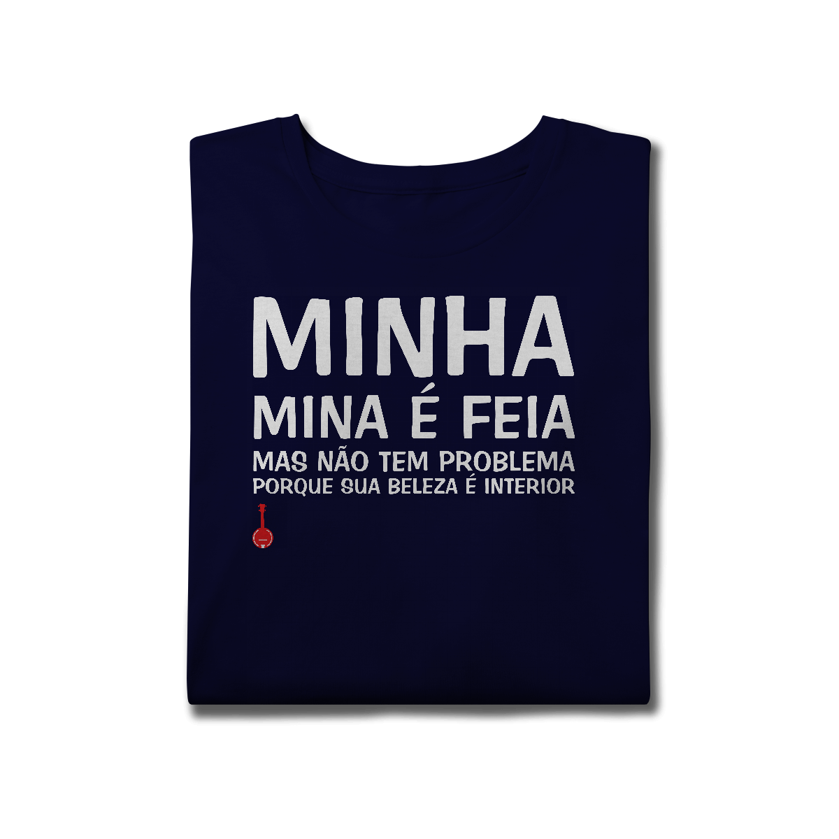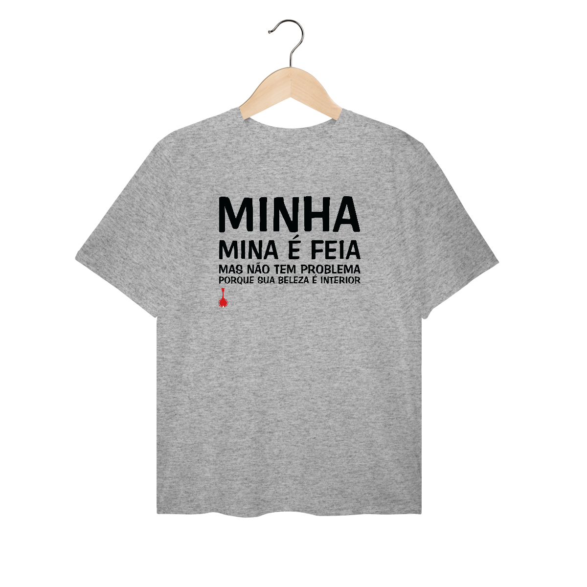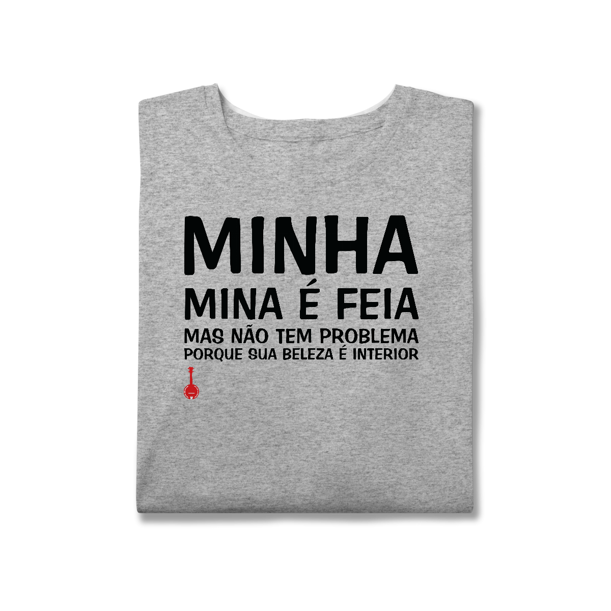 Camiseta cheia de humor! Estampa inspirada na música “Mina Feia”, composição de Gabriel Moura, Seu Jorge, Pretinho da Serrinha e Rogê, que fez muito sucesso na voz do próprio Seu Jorge.